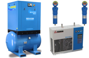 The premium value choice for standard industrial compressed air systems in the 0.5 to 2.40 m3/min range. Each package includes a Senator TS Series tank-mounted screw compressor, refrigerant dryer and two stages of filtration. The clean, dry compressed air is suitable for most pneumatic applications.